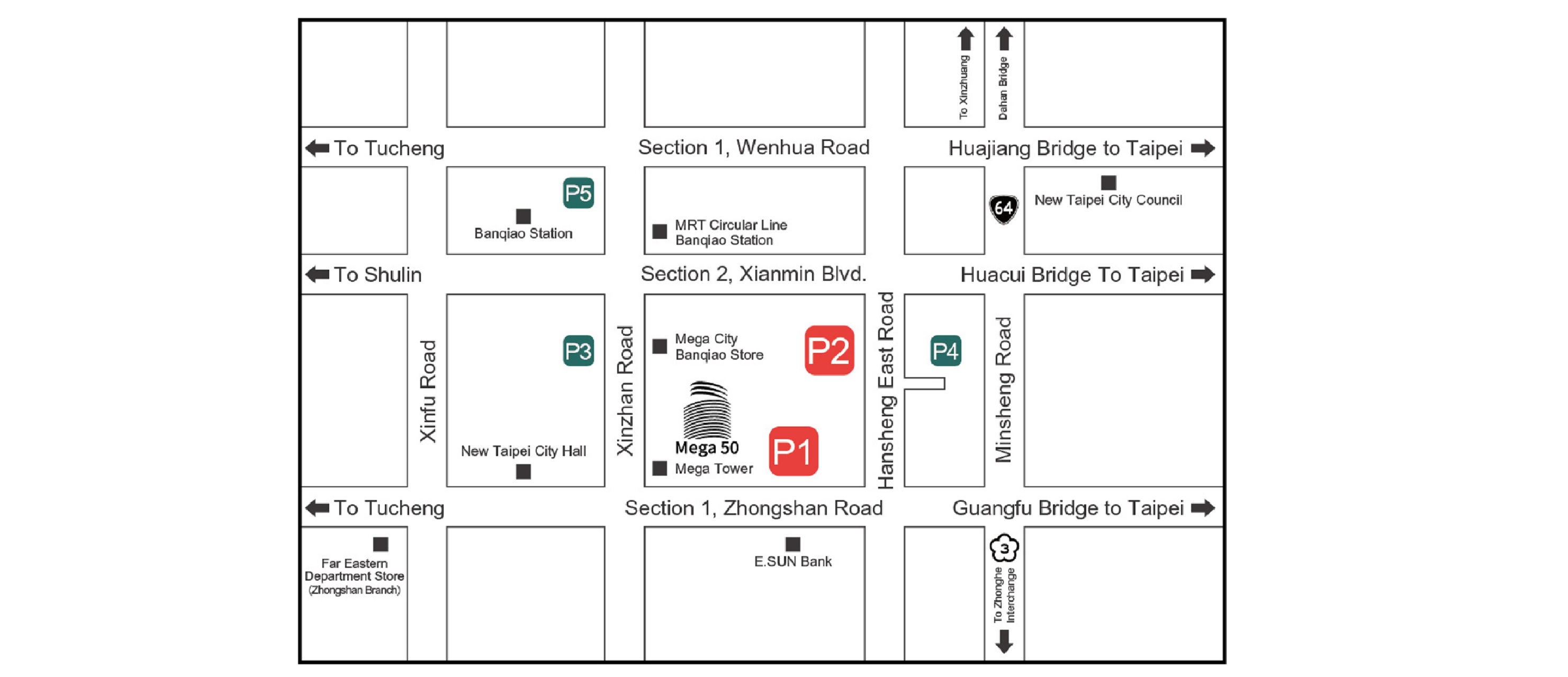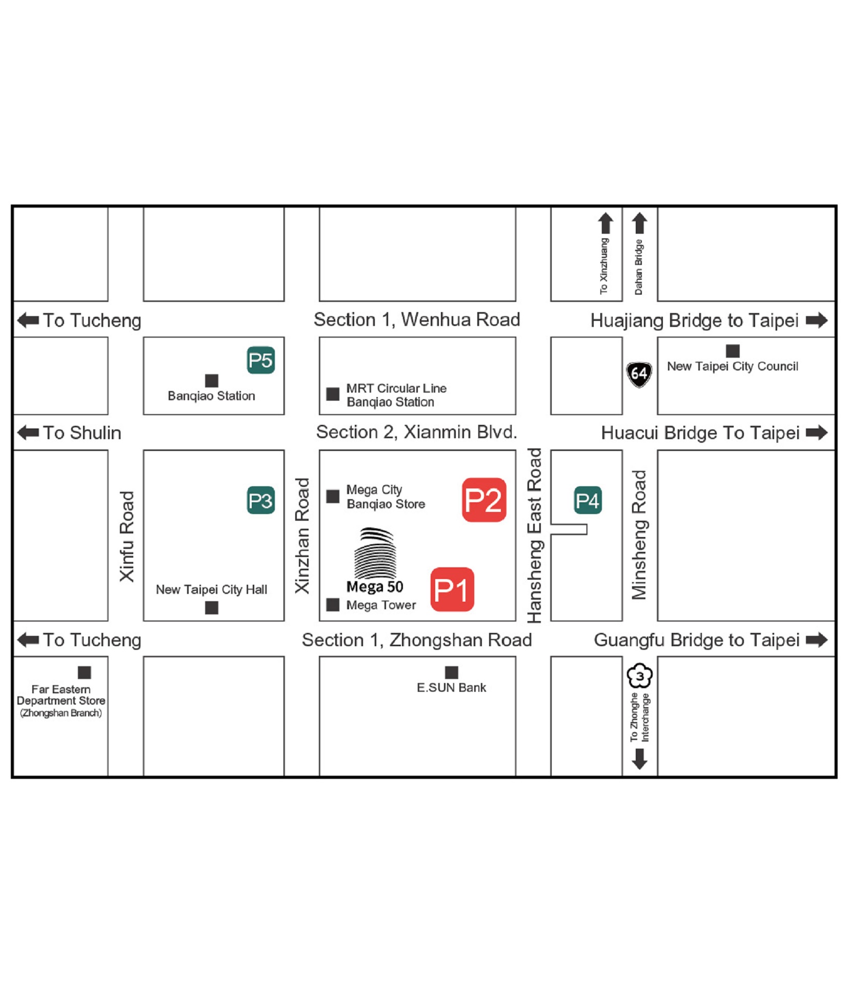 Mega 50 Address: 48F to 50F of Mega Tower (next to Mega City), No. 16, Xinzhan Road, Banqiao District, New Taipei City, 220