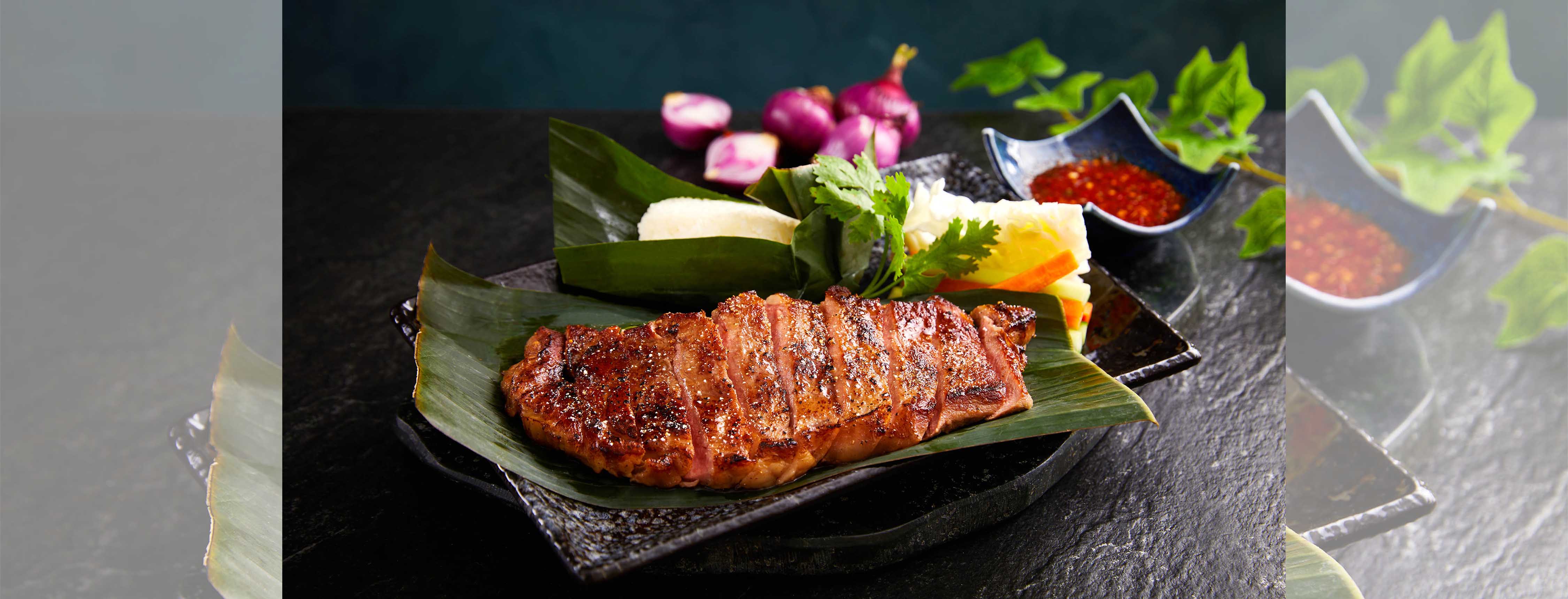 炭烤美國頂級肋眼牛排配糯米飯佐泰式香料酸辣醬