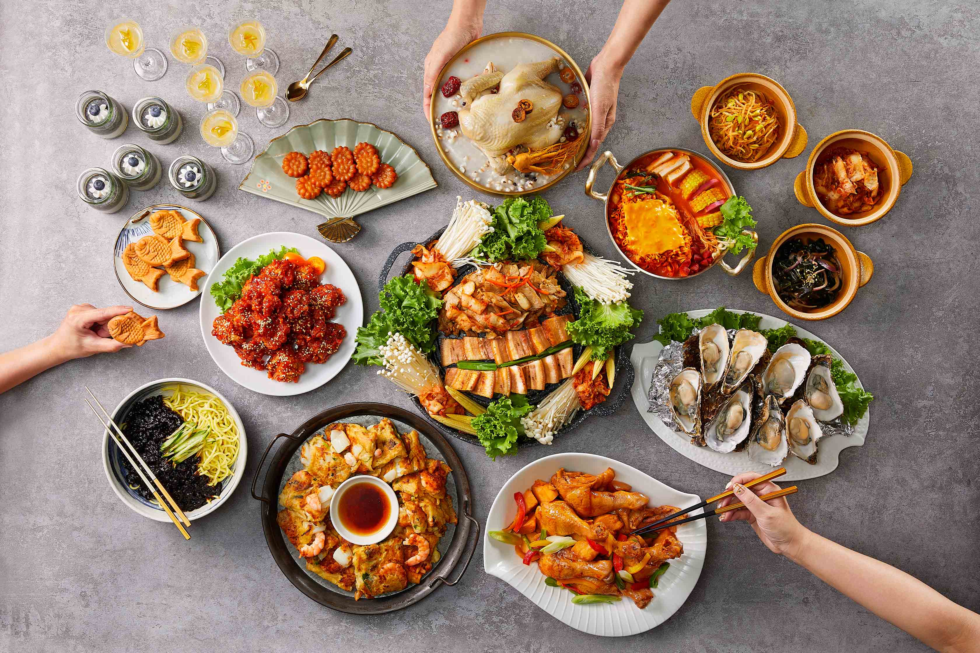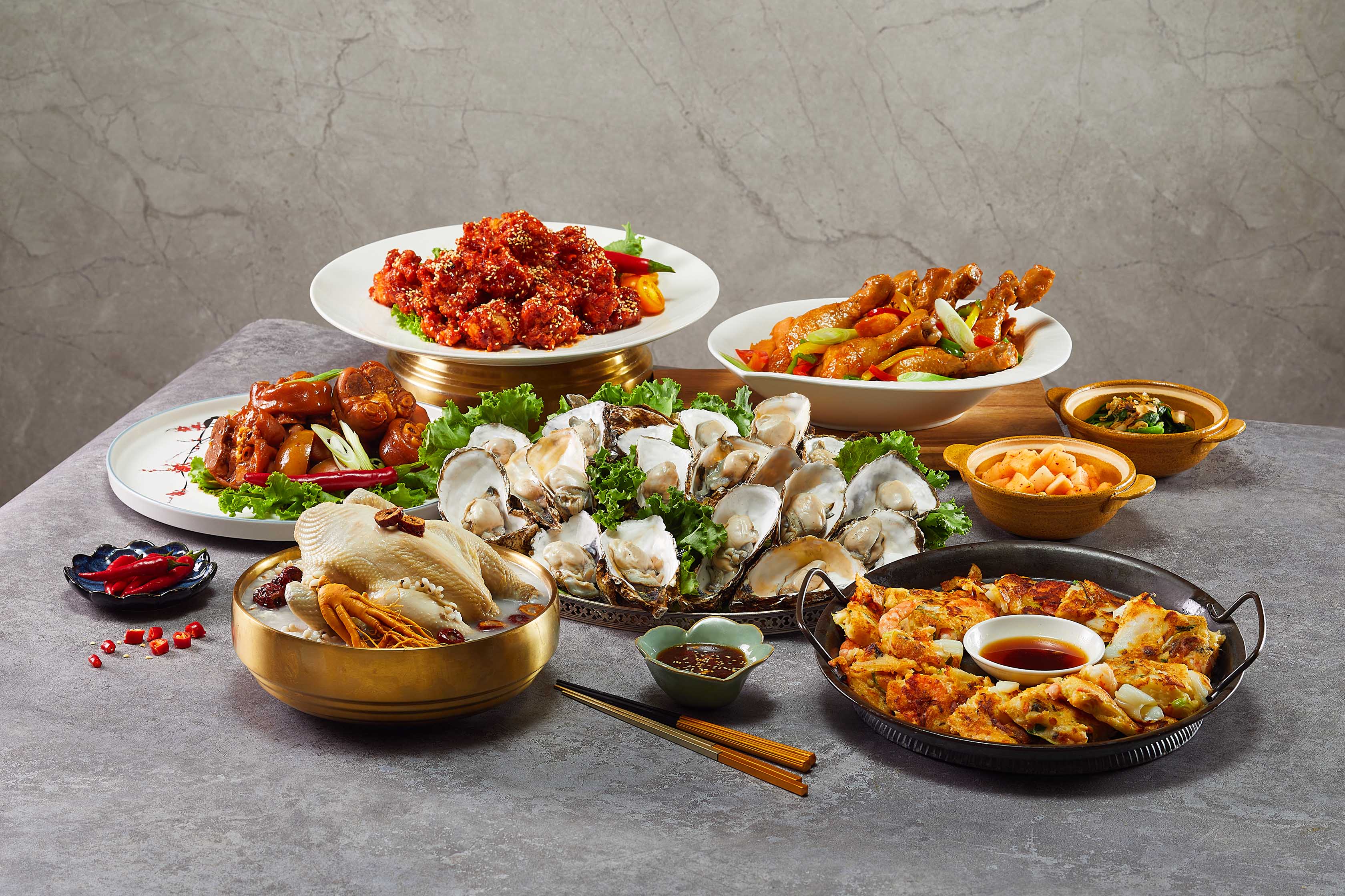 「韓味大賞」海陸美饌齊備,當中也包含遊玩韓國南部海岸必嚐的「燒烤鮮蚵」,50樓Café選用來自東石的鮮活帶殼牡蠣,大火烤出鹹鮮海味,再佐搭特調韓式醋汁,襯托蚵肉清甜。因應時序入秋,也以新鮮人蔘及紅棗、薏仁等藥材燉製「人蔘雞湯」,清潤暖胃,最適合秋季溫補。經典「韓式炸雞」外酥內嫩,裹上甜辣醬汁,令人吮指回味。「海鮮煎餅」富含滿滿鮮蝦、花枝與魚肉,澎湃厚實。「安東燉雞」以麻油拌炒雞腿再慢燴入味,醬香濃郁。好評菜色滷豬腳也改以韓式辣醬、蜂蜜、蘋果、肉桂等香料滷製,鹹香微辣更添韓食風情。