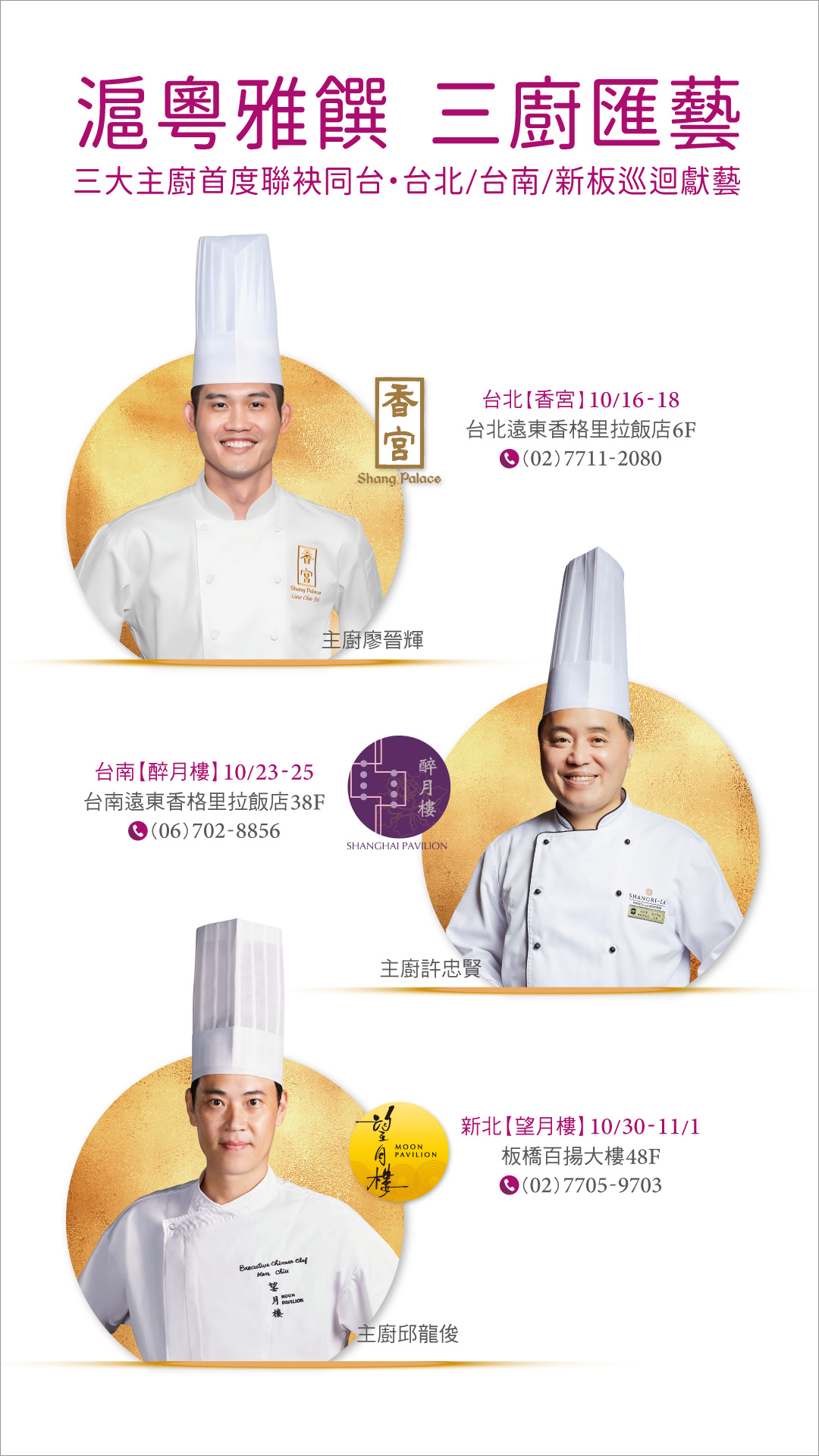 重磅快訊!台北「香宮」、台南「醉月樓」、新板「望月樓」三大主廚首度同台,聯手設計「滬粵雅饌」星級饗宴,三城巡迴獻藝!訂位請依檔期致電各廳。