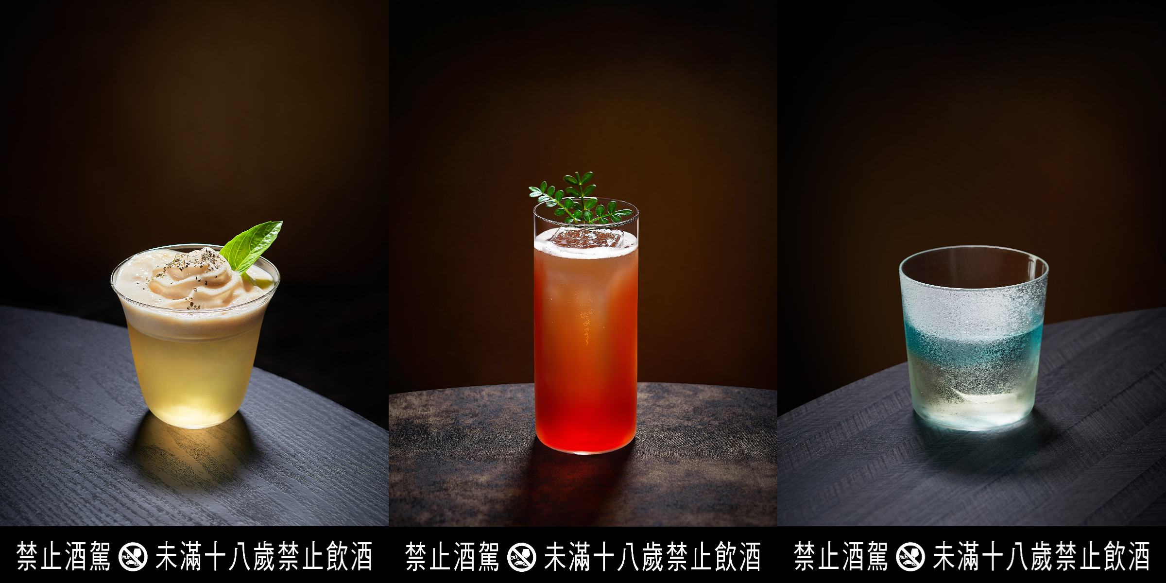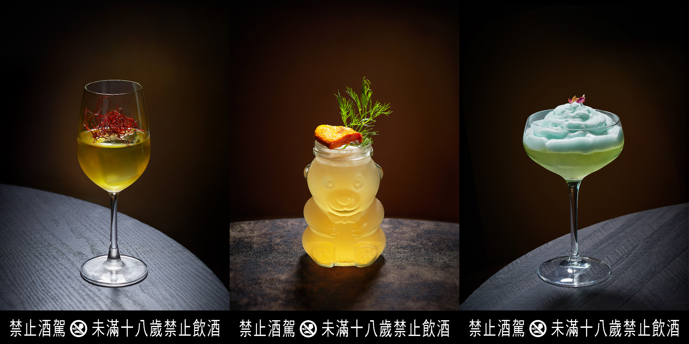 「台式經典(NT$450,下圖左)」將台灣味十足的麻油混搭38度金門高粱,以油洗技法澄清,賦予酒體特殊香氣,頂層泡沫則蘊含醬油與麥茶氣味,每口都喚起台式熱炒的舌尖記憶。「韓巷微醺(NT$450,下圖中,下圖中)」靈感源自韓國民眾下班後就食的布帳馬車文化,以融入水蜜桃香的燒酒疊加覆盆子與咖啡、氣泡,苦甜交織,清爽而平衡,撫慰身心。象徵日本的「雪之國(NT$460,下圖右)」將日本琴酒揉合文旦、葡萄柚與黃檸檬的柑橘酸香,再以昆布鹽輕輕勾勒旨味,杯口輕撒糖粉,點綴冬日浪漫。