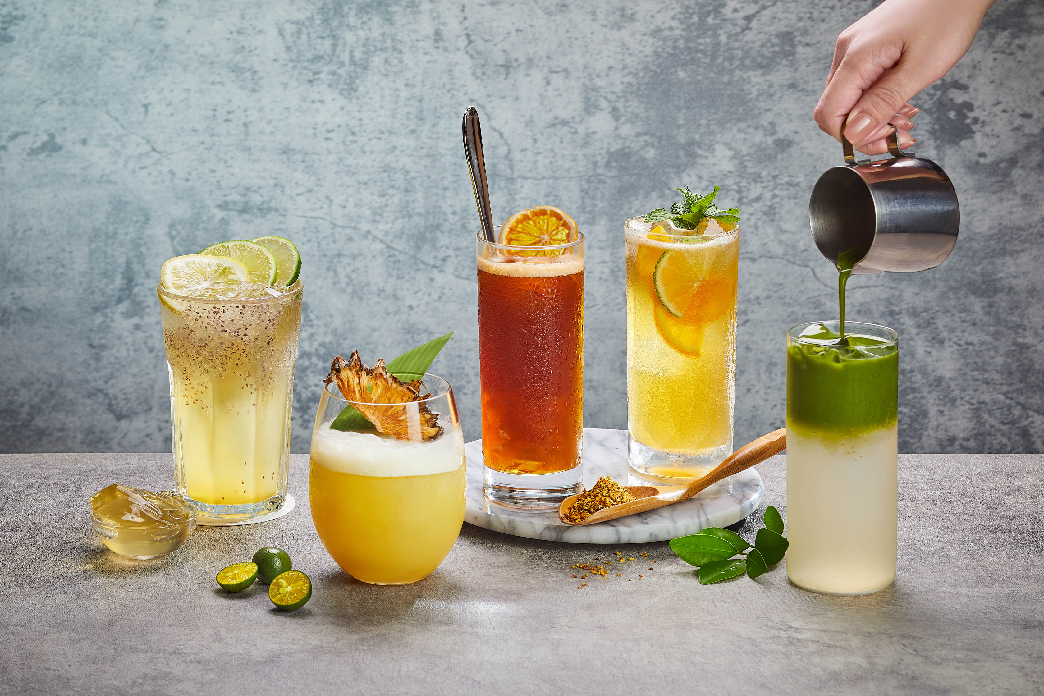 除了調酒,Asia49也有別具巧思的全新無酒精調飲(每杯NT$250)登場,像是日式風格的「抹茶費士」,選用京都宇治抹茶粉手刷出細緻綿密泡沫,搭配檸檬氣泡水,微苦回甘中透出清爽滋味。「觀音靜茶」以冷泡鐵觀音結合烏梅汁與桂花糖蜜,酸甜之間,淡淡煙燻留香。「神蜜泡泡蛙」則取材夜市飲品「青蛙下蛋」,以奇亞籽與蜂蜜檸檬愛玉為基底,再調入國寶茶增添草本香氣。其它還有依時令變換口味的季節水果茶,以及滿滿南洋氣息的香茅鳳梨冰茶、泰式鮮奶茶等,讓不喝酒的賓客同樣能享受味蕾的暢快旅程。