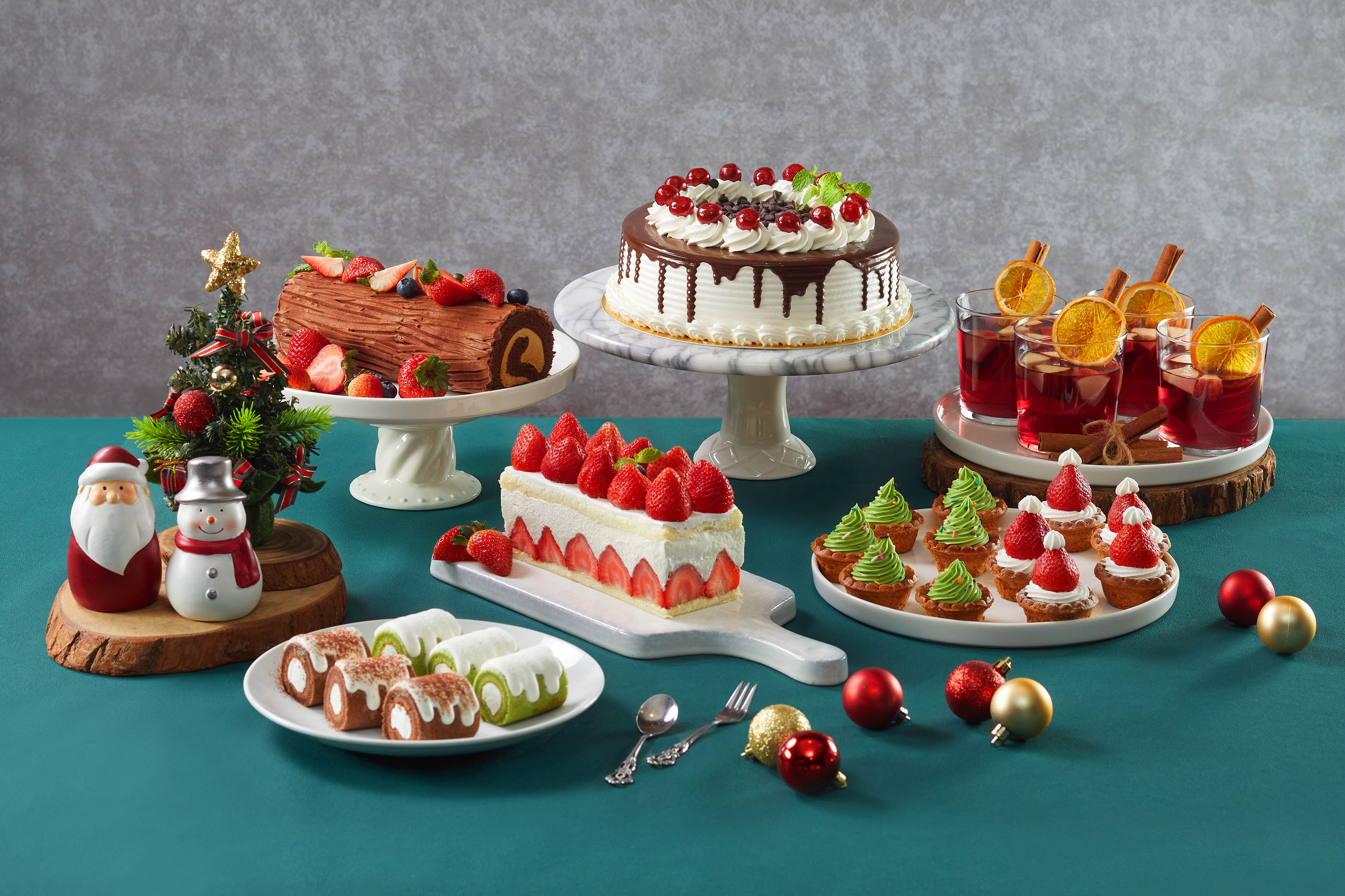 品味完豐盛主菜,讓繽紛甜點為美好食光再添驚喜。季節限定的樹幹蛋糕、聖誕老人草莓塔、聖誕樹抹茶塔、奶油蛋糕卷、冬日蜂巢蛋糕、聖誕圈圈等琳瑯羅列,個個療癒吸睛,甜美誘人。冬季不可或缺的還有熱呼呼的燒仙草,佐搭花生及芋圓、珍珠、粉粿等輪替供應的配料,甜而不膩,為整場盛宴畫下暖心句點。