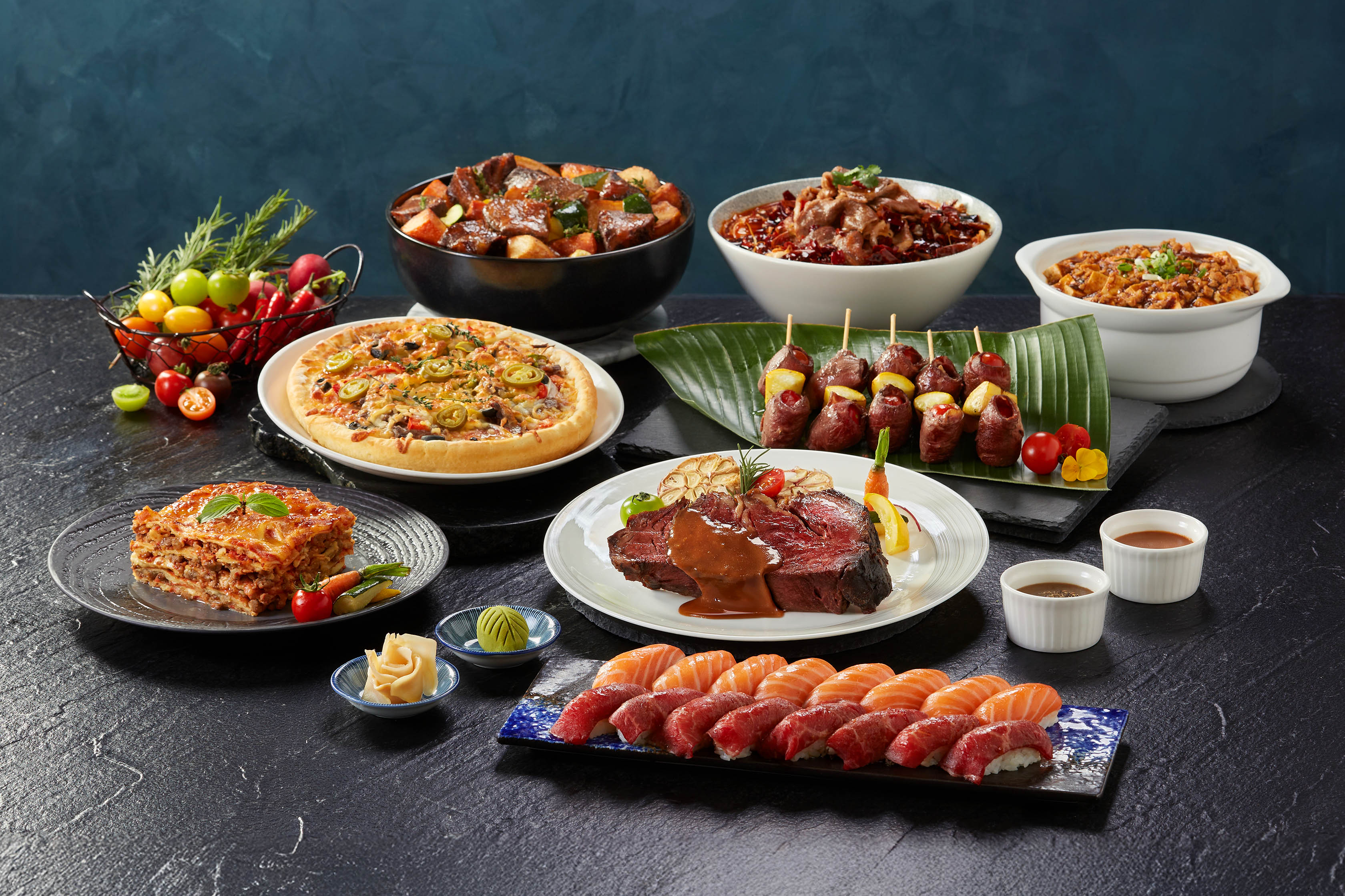 甜點區同樣誠意滿滿,琳瑯豐富、香甜誘人。「焦糖巧克力蛋糕」以鬆軟蛋糕體夾入焦糖餡,點綴巧克力鮮奶油,微苦帶甜,香濃療癒。「巧克力菠蘿泡芙」外層酥脆、內餡細滑,可可香味縈繞,醇美回甘。金黃耀眼的芒果系列甜點更是讓人垂涎,無論是滑嫩可口的「芒果奶酪」,或是香滑卡士達餡佐搭新鮮芒果丁的「芒果塔」,道道都是酸甜清爽,果香馥郁。其它像是藍莓派、檸檬派、德式巧克力慕斯蛋糕等也將輪番登場,為滿載肉香的和牛饗宴畫下輕盈甜美的句點。